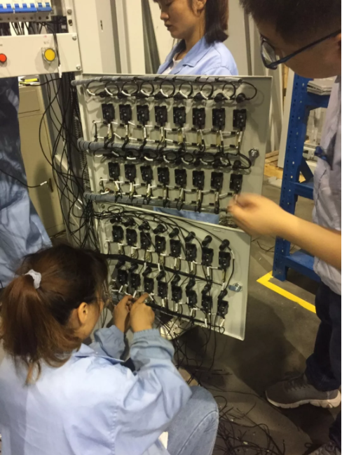 新疆阿克塔木17臺KYN28柜項目生產(chǎn)現(xiàn)場,在工藝要求極高,二次線頭數(shù)平均約1200個的情況下,二次線班組堅持一人一臺的有序工作安排,最終用3天時間完成了生產(chǎn)任務(wù)!
