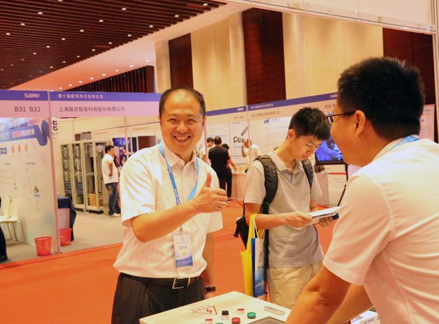 前來(lái)威勝電氣展位的嘉賓對(duì)威勝豎起了大拇指稱贊