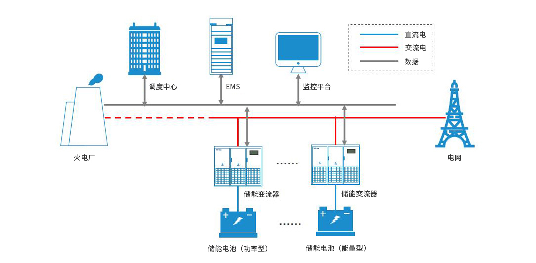 儲能系統(tǒng)能夠?qū)崿F(xiàn)一次調(diào)頻和二次調(diào)頻控制,實時監(jiān)測負荷波動,快速響應(yīng)電網(wǎng)調(diào)度,提高電網(wǎng)頻率穩(wěn)定性。儲能系統(tǒng)也能夠根據(jù)電網(wǎng)功率因數(shù)變化,動態(tài)調(diào)整電網(wǎng)無功,減少系統(tǒng)損耗,保障電網(wǎng)可靠運行。