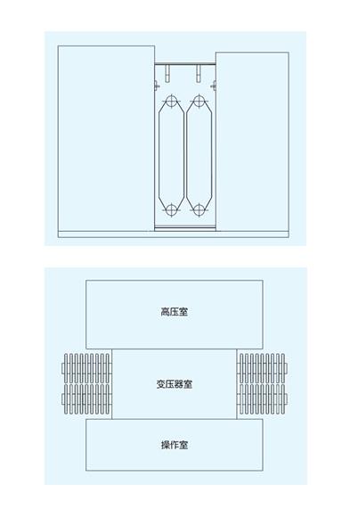 1、 箱變結(jié)構(gòu)分為變壓器本體、高壓室、低壓室、檢測(cè)室、開關(guān)操作室和熔斷器室六個(gè)部分,可按“目”字型或“品”字型排列。