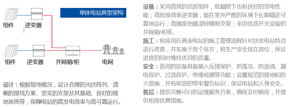 威勝扶貧光伏電站全生命周期解決方案,致力于從開發(fā)、設(shè)計(jì)、安裝、運(yùn)維各個(gè)階段為用戶提供最專業(yè)貼心的服務(wù),通過這些服務(wù),將扶貧光伏電站打造為始終如一的價(jià)值最大化的收益型資產(chǎn),幫助實(shí)現(xiàn)精準(zhǔn)扶貧、精準(zhǔn)脫貧。