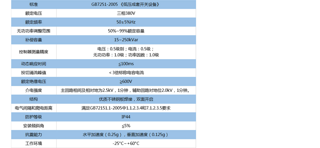 無功補(bǔ)償︰固定步長、共補(bǔ)、分補(bǔ)組合,可實(shí)現(xiàn)自動循環(huán)智能投切,無投切震蕩,無補(bǔ)償呆區(qū);顯示內(nèi)容︰三相電壓、電流、功率因數(shù)、無功功率、有功功率、諧波電壓畸變率、諧波電流畸變率。