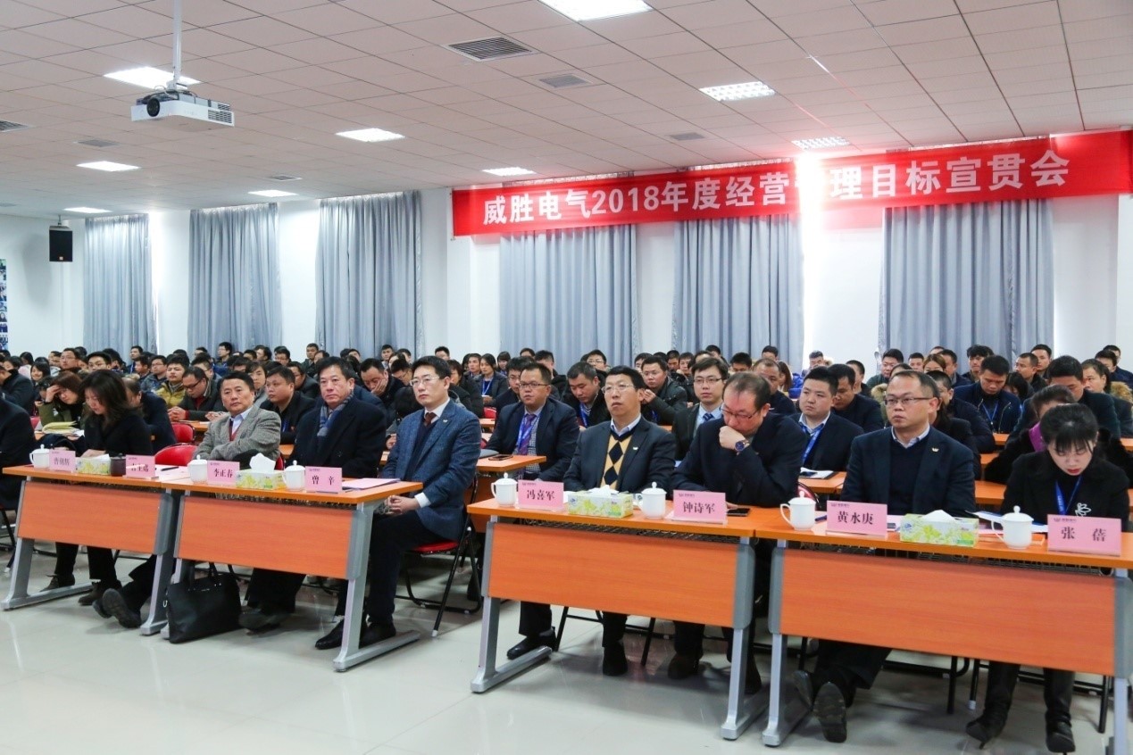 2018年經(jīng)營(yíng)管理目標(biāo)宣貫會(huì)共三個(gè)階段:首先,會(huì)議宣讀了2018年威勝電氣總裁任命、電氣經(jīng)營(yíng)管理團(tuán)隊(duì)和銷售負(fù)責(zé)人的人事任命。