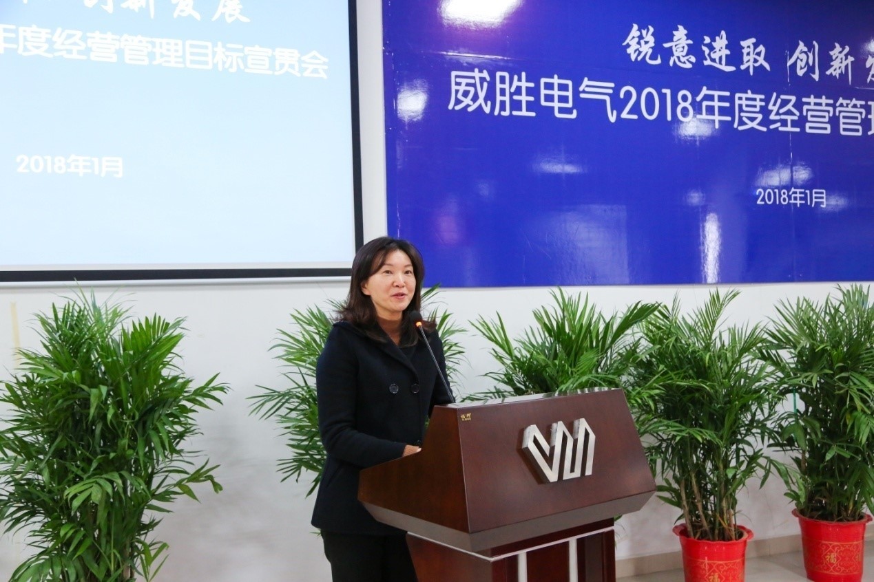 2018年1月8日下午,以“銳意進(jìn)取,創(chuàng)新發(fā)展”為主題的威勝電氣2018年經(jīng)營(yíng)管理目標(biāo)宣貫會(huì)在電氣產(chǎn)業(yè)園會(huì)議中心培訓(xùn)室順利召開(kāi)??毓啥聲?huì)吉主席、控股本部、威勝電氣董事會(huì)以及經(jīng)營(yíng)管理團(tuán)隊(duì)的各位領(lǐng)導(dǎo)、威勝電氣員工代表共計(jì)260余人參加了本次會(huì)議,會(huì)議由威勝電氣行政人事總監(jiān)鄧超艷女士主持。
