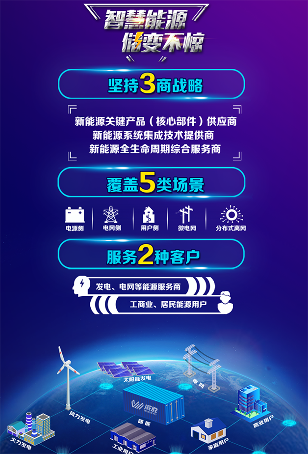 惟遠能源產(chǎn)業(yè)技術(shù)有限公司,智慧新能源與能效服務(wù)專家。儲能,是實現(xiàn)“智慧能源”的重要手段,威勝“儲能+”屬于“新能源+”內(nèi)涵,是公司未來著重發(fā)展的業(yè)務(wù)。為了更好地服務(wù)客戶,威勝針對大型能源系統(tǒng)、微電網(wǎng)、分布式離網(wǎng)系統(tǒng)提出5類儲能應(yīng)用場景,分別提供解決方案與服務(wù)。