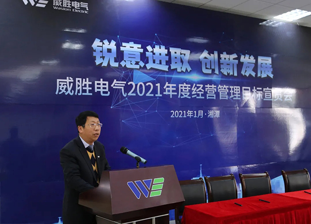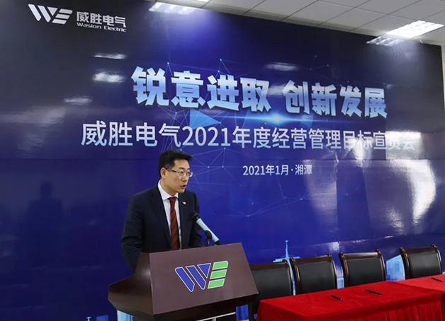 威勝電氣兩位BG總裁分別對(duì)各自業(yè)務(wù)領(lǐng)域2021年的經(jīng)營規(guī)劃與實(shí)現(xiàn)目標(biāo)的決心進(jìn)行了發(fā)言。智慧能源BG總裁曾辛先生提出,2021年新能源發(fā)展將再出發(fā),以互聯(lián)、互動(dòng)、共享的智慧能源服務(wù)技術(shù),為碳中和目標(biāo)下的能源低碳化、電氣化發(fā)展提供高友好性、高經(jīng)濟(jì)性的智慧能源產(chǎn)品與服務(wù),以實(shí)現(xiàn)經(jīng)營目標(biāo)和業(yè)務(wù)價(jià)值;智能配網(wǎng)BG總裁馮喜軍先生從市場開拓、運(yùn)營管理、產(chǎn)業(yè)升級(jí)三方闡述了2021年經(jīng)營思路:鎖定六大重點(diǎn)市場,以規(guī)模推動(dòng)效益;提升精益生產(chǎn)能力,以管理優(yōu)化質(zhì)量;創(chuàng)新智能配電方案,以升級(jí)帶動(dòng)發(fā)展。