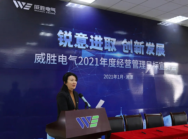 會(huì)上,曹朝輝女士宣讀了威勝電氣BG總裁任命書并對(duì)五五階段及2021年目標(biāo)進(jìn)行了宣貫:威勝電氣將堅(jiān)持聚合資源協(xié)同發(fā)展,通過“賽道賽馬”和“金牛項(xiàng)目”,實(shí)現(xiàn)電氣業(yè)務(wù)縱深發(fā)展與戰(zhàn)略升級(jí),成就新能源+系統(tǒng)解決方案為主賽道小獨(dú)角獸’的發(fā)展定位。