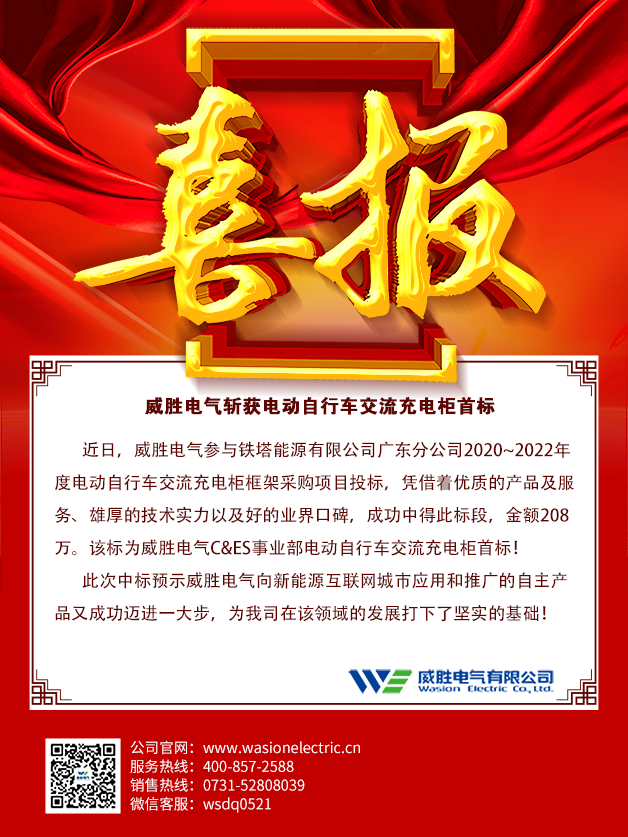 【中標(biāo)喜訊-威勝電氣斬獲電動自行車交流充電柜首標(biāo)!】