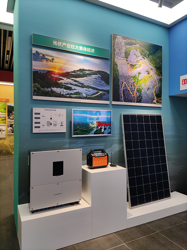 特別值得一提的是,在成就展2號(hào)展廳,有一個(gè)特別的一角,它以光伏扶貧產(chǎn)品+視頻+圖片等形式充分展現(xiàn)了以威勝電氣為代表的能源企業(yè),近年來(lái)充分結(jié)合實(shí)際,積極開展光伏扶貧工作,為貧困地區(qū)建設(shè)光伏電站,上網(wǎng)電量收益直接用于貧困群眾增收,為實(shí)現(xiàn)“精準(zhǔn)扶貧”、壯大集體經(jīng)濟(jì)提供了“湖南樣本”!
