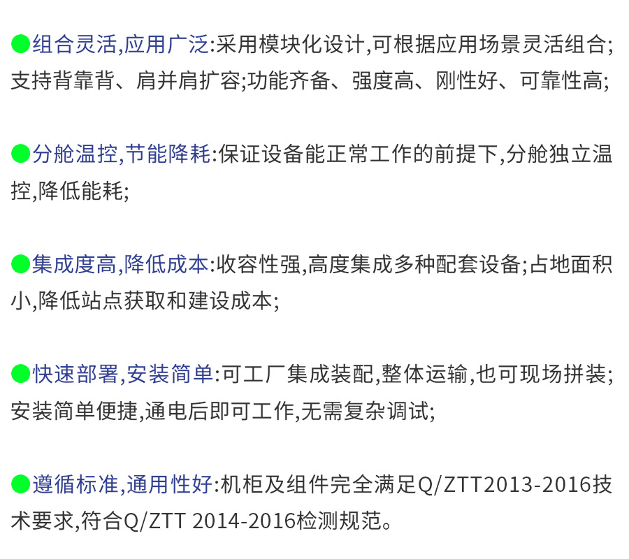 室外一體化機柜是指直接處于氣候影響下,由金屬或非金屬材料制成的,不允許操作者進入操作的柜體。其內(nèi)部集成開關(guān)電源系統(tǒng)、溫控設(shè)備、交直流配電,并能安裝蓄電池、通信系統(tǒng)設(shè)備及其他配套設(shè)備,能夠為內(nèi)部設(shè)備正常工作提供可靠的機械和環(huán)境保護。室外一體化機柜以整體集成為原則,采用整站集成的技術(shù)方案,不同客戶的設(shè)備集中管理、集中放置,并適當保留擴容空間。