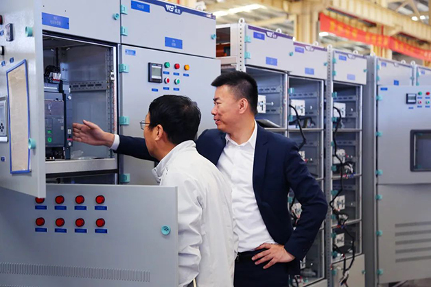 隨后西門子一行人走進(jìn)了公司現(xiàn)代先進(jìn)的生產(chǎn)車間,深入自動(dòng)化生產(chǎn)線、鈑金加工生產(chǎn)線、殼體裝配生產(chǎn)線等多條產(chǎn)線參觀。當(dāng)走到西門子核心授權(quán)我司生產(chǎn)的SIVACON-8PT柜時(shí),韓振華先生高興的說“這跟見到自己家的孩子一般親切”。隨后,他詳細(xì)的查看起該產(chǎn)品的生產(chǎn)工藝水平,并如數(shù)家珍的給大家介紹了起這款產(chǎn)品的優(yōu)勢(shì)特點(diǎn)。同時(shí),他也高度贊賞威勝電氣在8PT的制造及應(yīng)用上的創(chuàng)新和工藝制作水準(zhǔn)屬于行業(yè)領(lǐng)先水平!