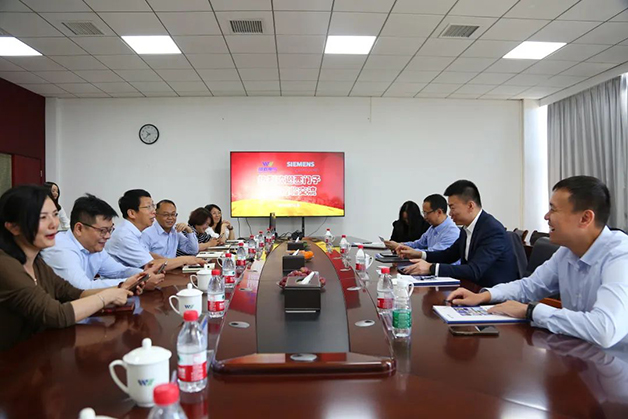 參觀結(jié)束后,威勝電氣與西門子此行高層共聚一堂,在輕松隨和的氛圍中開啟了雙方的座談會(huì)。大家首先共同回顧了雙方的合作歷程,自2016年攜手以來,兩家企業(yè)就處于水乳交融、攜手共進(jìn)的良好局面。