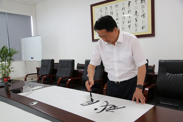 集團(tuán)、電氣領(lǐng)導(dǎo)先后來(lái)到展室,認(rèn)真觀看每一件展品,對(duì)大家的積極參與給予熱情鼓勵(lì)。吉主席還為威勝電氣題詞,大氣豪邁的四個(gè)大字引得陣陣掌聲。